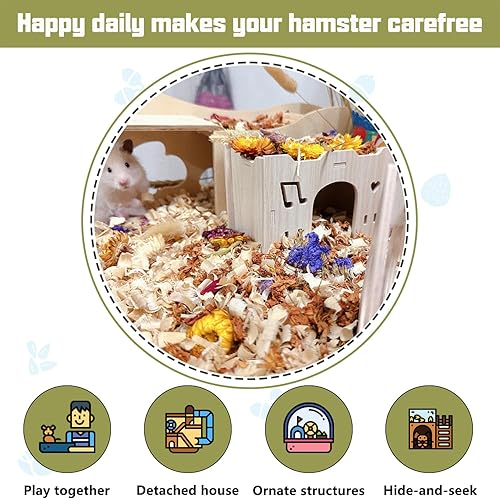 [Cozy and Durable]:With a full wood fragrance,provides a cozy and comfortable living space for your hamster,while being durable enough to withstand their playful antics.