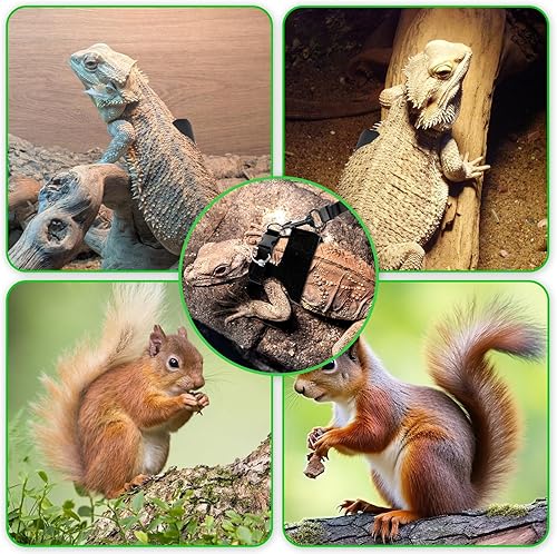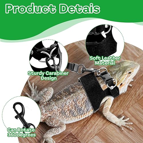 Easy to wear: The bearded dragon leash is equipped with a TPU reinforced buckle and an adjustable leash, which can be quickly put on and taken off. Put the soft leather vest on the pet's chest, pass the legs through the cuffs, and fasten with snaps, without the need for additional tools. Ensure that both the owner and the pet can enjoy a stress-free experience when exploring outdoors. This set is designed for a variety of environments and is reliable and durable