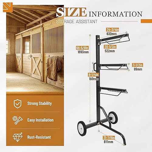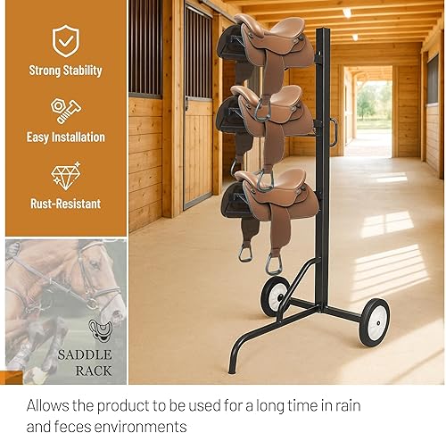 Mobile & Space-Saving: The 3-tier saddle stand is about 66.6 inch in height, providing ample storage for various saddles,Keep your horse stable equipment organized and your stable clean and tidy