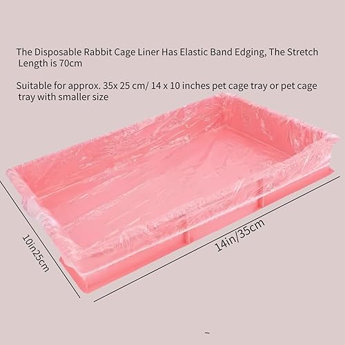 Small Sizes:The Disposable Rabbit Cage Liner Has Elastic Band Edging, The Stretch Length is 70cm, suitable for approx. 35x 25 cm/ 14 x 10 inches pet cage tray or pet cage tray with smaller size.