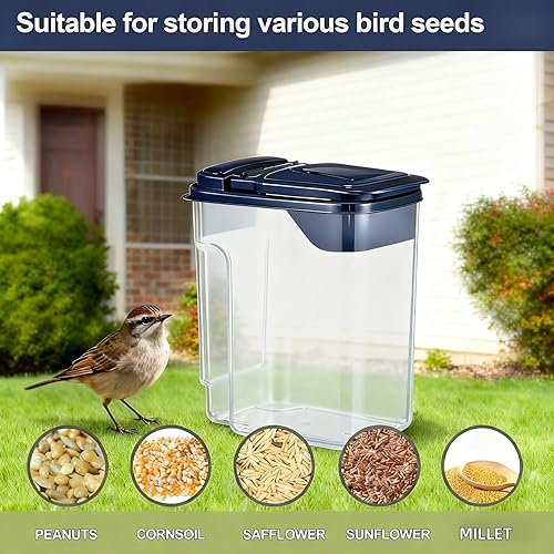 【 Multi-Functional & Easy to Use】-The wide mouth opening allows for quick and easy filling from bird seed bags. Beyond bird feeding, it’s ideal for storing pet food, lawn seeds, fertilizers, grains, or crafting materials. A versatile must-have for any home.