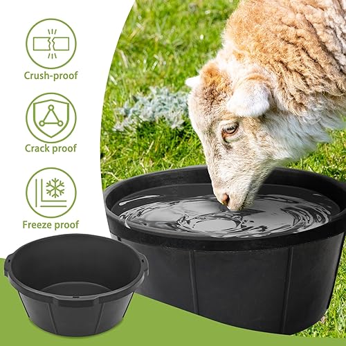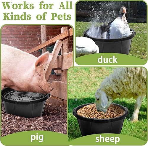 Extra Large and Stable: You'll receive 3 heavy duty rubber tubs (26 qt/6.5 gallon), perfect for chickens, ducks, goats, pigs, and horses; These versatile rubber bowls work as both feeders and water buckets, providing an integration farm solution