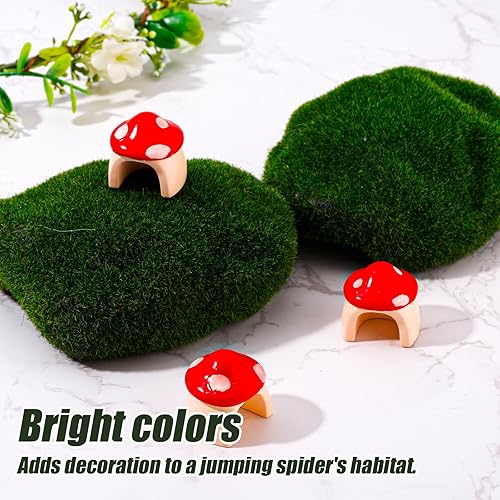 Package Includes: You will receive 3 pieces of cute resin jumping spider mushroom hideouts, the size is 2.6x2.5cm/1.02x0.98 inch, which is big enough to meet your use and decoration needs.