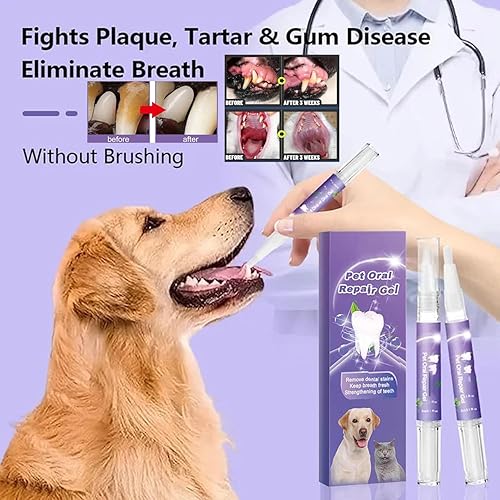 Gel pen for pet oral cavity repair: Remove accumulated stains, whiten pet teeth, and clean oral cavity. Easily remove tartar, improve gum health, and freshen the breath of dogs and cats.