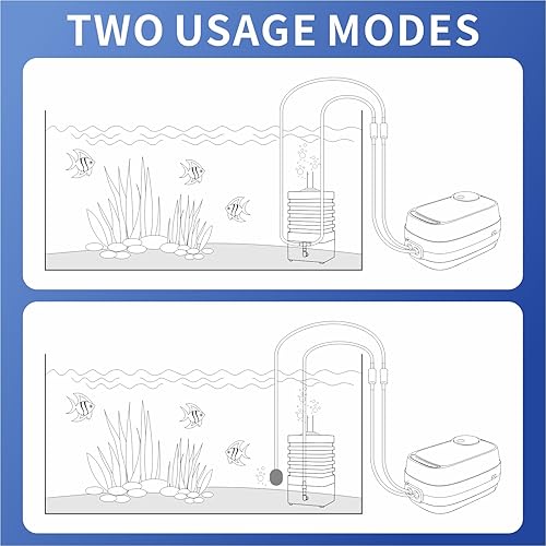 【Powerful & Adjustable Fish Tank Air Pump】With Power:3W and Output:2X3.4L/M, the aerator provides strong air pressure and large air flow continuously. The air volume is adjustable to meet the needs for different fish tanks up to 100 Gallon.