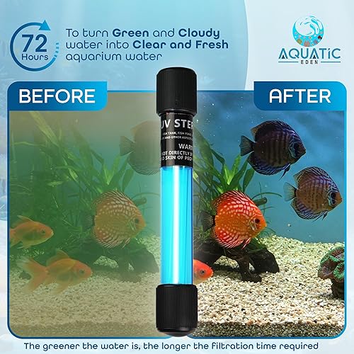 MAINTAINS WATER CLARITY: Keep your tank looking clean and clear with AQUATIC EDEN’s 3W UV light for aquariums. Designed for tanks up to 10-20 gallons, and compatible with low bio-load setups up to 30 gallons, it enhances the visual appeal of your aquarium.