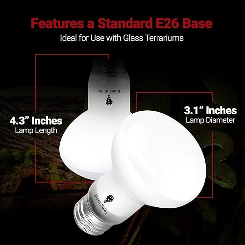 Heat Lamp. Ideal for use with glass terrariums, Bluex Bulbs 50-Watt Basking Light for Reptiles Spot Lamps are ideal for reptiles that cannot regulate their own temperature. Use them to seamlessly illuminate the target area and create a daily living space.