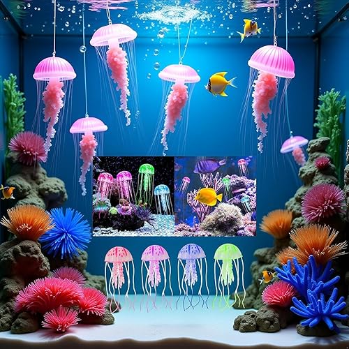 GLOWING EFFECT: Lifelike silicone jellyfish decorations with luminescent properties create a mesmerizing underwater atmosphere in your aquarium