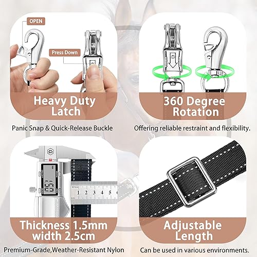 Adjustable Cross Ties for Horse: Adjust from 56.5"-98.4", almost accommodating all horse sizes and various environments, from barns to trailers, ensuring a secure and customized fit every time