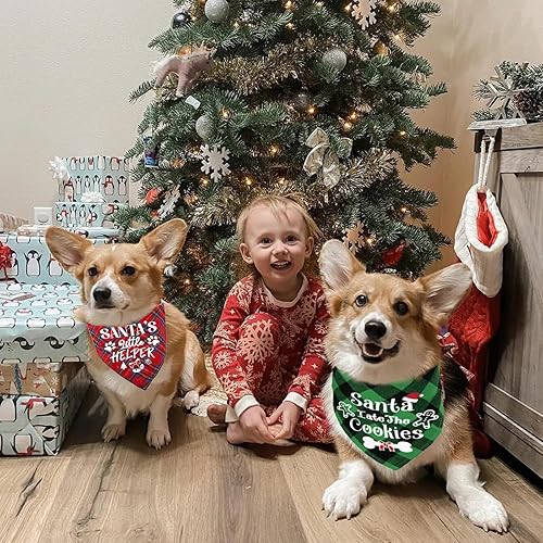 [Dog Christmas Bandana Include]: Classic red green plaid design, fashion and never out of date, carefully designed christmas themed pattern, full of xmas atmosphere, 4 pack set is enough for christmas wear and replacement. "Merry Christmas", "Santa's Little Helper" are printed on the front, which is suitable for holiday dog costume decorations. There is no printing on the back, which is suitable for daily use.