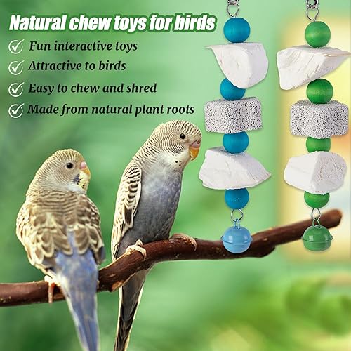 【NATURAL QUALITY MATERIALS】 Our bird beak grinding stone is made of porous mineral stone, bird cuttlebone, colorful beads and bells, all of which are made of natural materials with no chemical additives to ensure the safety and health of your pet. It not only decorates the bird cage, but also attracts parrots to play, which contributes to your pet's mental and physical health, as well as sharpening the beak to prevent overgrowth.
