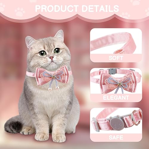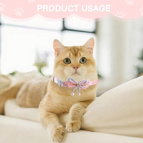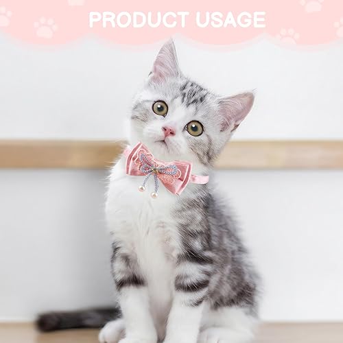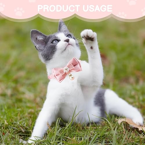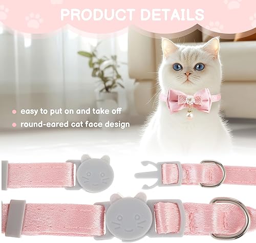 Elegant Bow & Pearl: Adorned with a charming pink bow and delicate pearl pendant, this collar adds stylish flair to your feline’s look