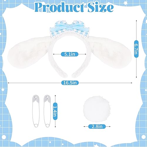 【Cute Headbands】: Our dog ear headbands are highly elastic and can fit most people's heads, providing comfortable and long-lasting wear. The long white ears will rise and fall as you move, which is very cute. The blue and white bow further highlights this cuteness