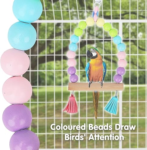 NATURAL MATERIALS: Parakeet toys Constructed with bird-safe wooden components that provide comfortable perching and climbing surfaces for your feathered friends