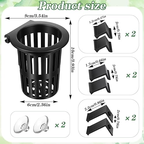 Complete Set for Aquarium Setup: This package includes 4 aquarium plant holders, 24 hooks (3 sizes: 0.47”x0.79”, 0.67”x0.79”, 0.87”x0.79”), and 8 suction cups (0.8”). Holders measure 3.54”x3.94”x2.36”, made of plastic. They provide tools for aquatic plant setups, meeting diverse fish tank installation needs