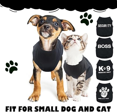 Set of 4 Pack: The black dog clothes comes in a pack of 4, which includes 4 patterns (k9, security, make your mark). It features a cute and funny pattern, making it a great choice for pet owners who want to dress up their furry friends.