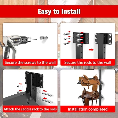 Strong storage: Our Saddle rack made of quality materials and can hold up to 250LB. It's sturdy with ample space, keeping your saddles neat