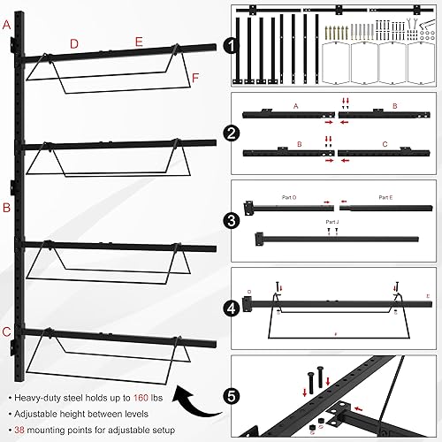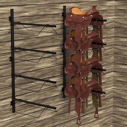 Save Storage Space: The 4-layer vertical wall-mounted saddle rack design can save storage space for the saddle, and the integrated design is more concise and beautiful, keep your stable organized, holds up to four horse saddles and other horse riding equipment