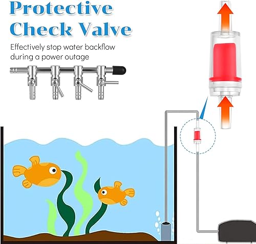 【Practical Design】The non-return check valve is small and compact, and protects the air pump by preventing the back-sucking of aquarium water during a power outage.