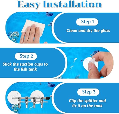 【Mounting Solution】Comes with 6 flexible suction cups with rotatable clips that firmly hold 3/16" ID or 1/4" OD airline tubing, easily adhering to any smooth aquarium surface without slipping or falling