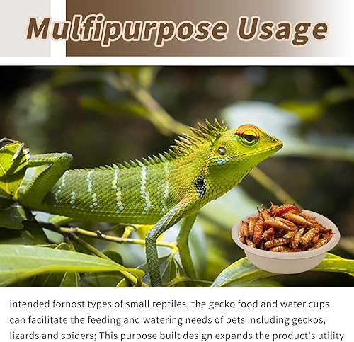 Multipurpose Usage: Designed for most types of small reptiles, the gecko food and water cups can fulfill the feeding and watering needs of pets including geckos, lizards, and spiders. This purpose-built design expands the product's utility and ensures its usefulness in various scenarios.