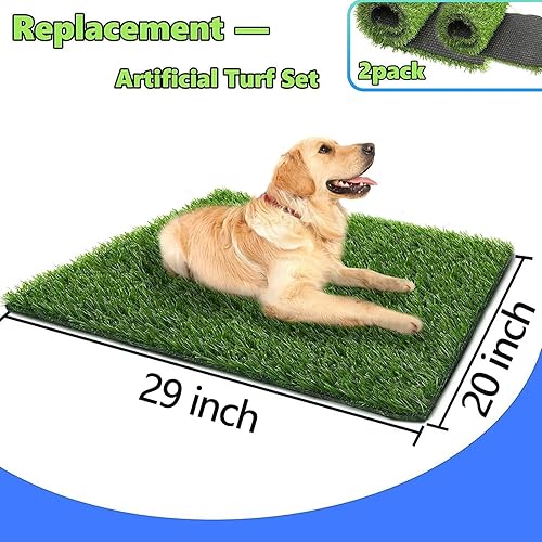 Specialized Dog Potty Grass: Length-43.5 Inches, Width-29.8 Inches, Thick Professional Artificial Turf has Realistic Colors and Looks Like Natural Grass. It's Friendly to Pet Potty Training. The Drainage Hole Runs Through the Entire Grass Pad. It's Highly Permeable and Can Quickly Drain the Liquid to Avoid Soiling the Pet'S Paw.
