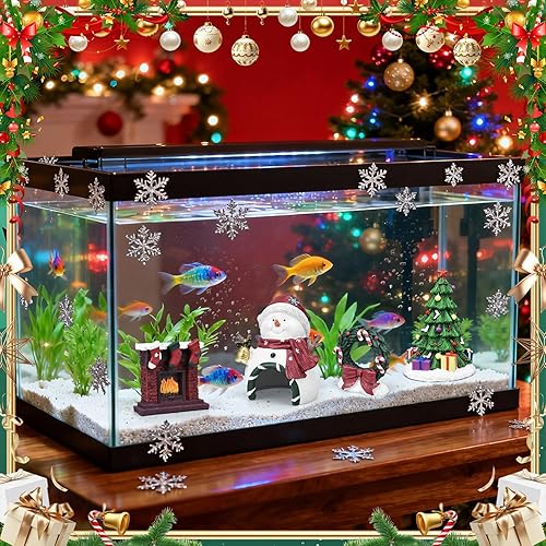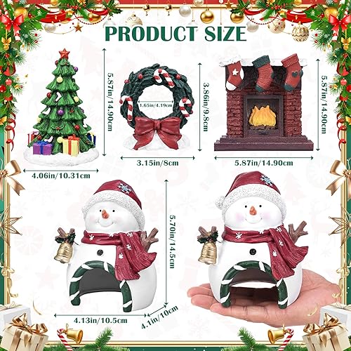 Perfect Size: Our snowman decorations are meticulously crafted, each measuring: Christmas tree: 5.86 x 4.05 inches, Christmas wreath: 3.85 x 3.14 inches, Christmas fireplace: 3.53 x 3.61 inches, and snowman: 6.06 x 4.09 x 5.07 inches. Compared to miniature resin figurines, ours feature finer workmanship and attention to detail, making your aquarium both adorable and practical.