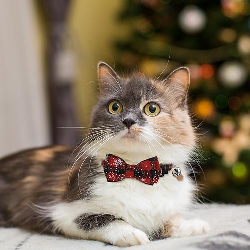 【Versatile Use】Whether for daily wear or special occasions, these christmas cat bowtie collars are perfect for indoor cats, kittens, and even small dogs. The festive design of christmas cat collar makes them a must-have for holiday pet photos and gatherings.