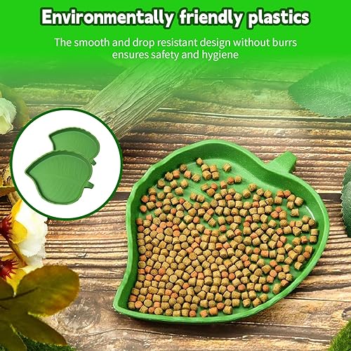 Beautiful design: 4 food snake water bowl include 2 small and 2 irregular shaped maple leaves each. The large maple leaf size is 6.1inx4.72inx0.59in, the small one is 4.72inx3.74inx0.394in, the irregular shaped size is 6.1inx4.72inx0.79in, and the small one is 3.94inx2.83inx0.512in. It is delicate and exquisite, with natural color and clear texture. Its unique shape not only adds a touch of green to the pet's habitat, but also allows pets to feel a sense of closeness to nature while eating