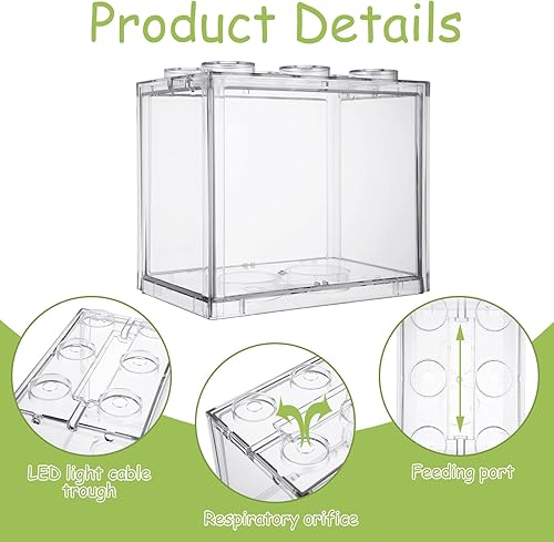 【Stackable】The appearance of fish tanks is designed with building blocks, which makes it can be stacked and placed or combined freely to add some scenery to your desk or room; the small goldfish tank measures about 6.3x5.5x4.1inch/16x14x10.5cm