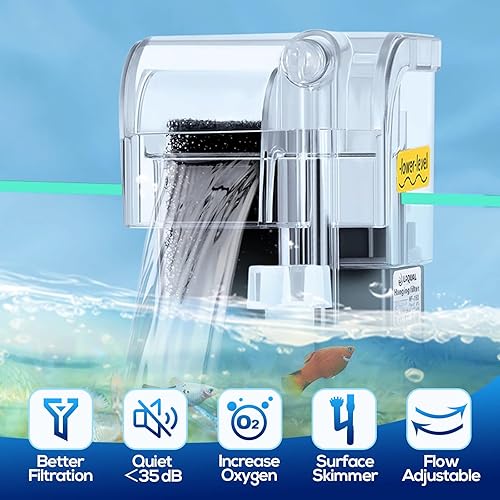 【Waterfall Design, Adjustable Flow & Increase Oxygen】Different kinds of fish need different intensities of water flow. Just toggle the adjustment switch to easily choose the right water flow. The small waterfall also produces more oxygen. It saves you the money for another oxygen bar. It's no longer a dream to build a little sea world in your own house.