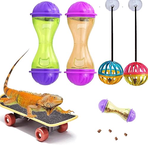 Package Including: 1 x skateboard, 2 x feeder balls bell, 2 x breaded dragon feed toy. Perfect-fit accessories designed for bearded dragons, hamsters, parrots, small turtles, and other small reptiles and pets.