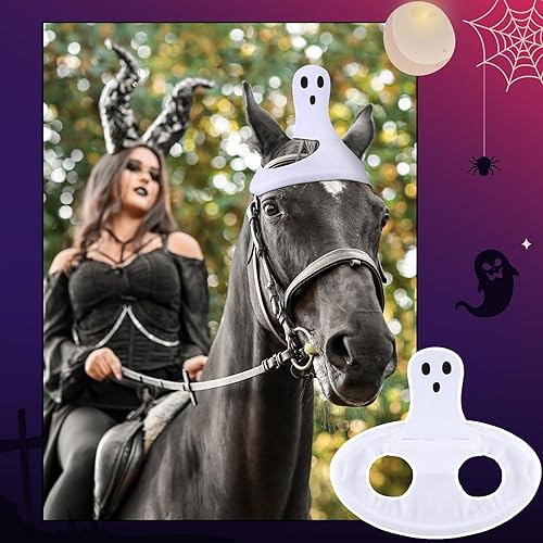 Halloween Horse Costume Accessories: this delightful Halloween horse set that will make your equine friend the center of attention; The set features a ghost theme, bringing excitement to the holiday season; Each set has 1 Halloween hats and 4 corresponding horse leg wraps, providing a complete costume for horses to wear