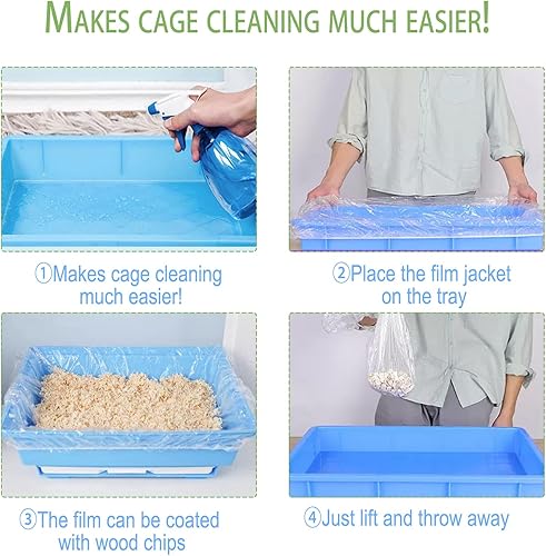 Easy to Use and Clean: Disposable animal tray film is the easiest way to clean the cage! Simply pull the elastic band over the tray, it will not come off easily. When you clean, just lift up the liner and throw away, save time in cleaning your pet's cage