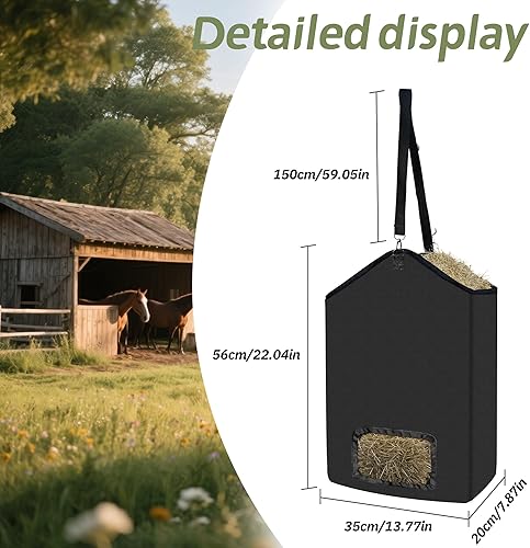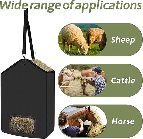 Multi-Animal & Multi-Scene Use:Ideal for horses, goats, cows, and alpacas, this bag works in barns, pastures, or travel. Lightweight yet sturdy, it keeps hay dry and clean in any environment, making it a versatile feeding solution.