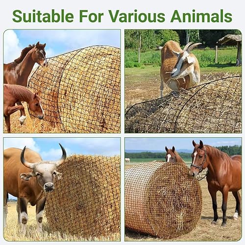 Wide Size:The size of the baler net is wide, measuring 5 * 6 feet, suitable for various types of balers, and ensures sufficient feeding space for your livestock. This optimal size is easy to operate and efficient for feeding, providing a comfortable grazing experience