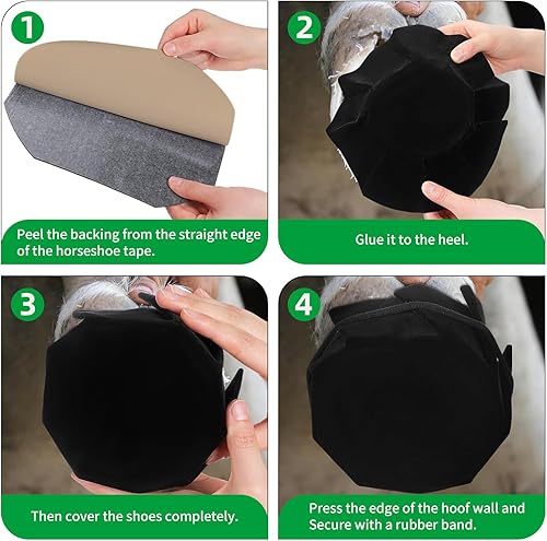 【Easy to Use】Just tear off the backing of the horseshoe tape from the corner edge, and you can easily stick it on the horse's hoof, and then easily complete the horse's hoof protection, and it works better with boots.