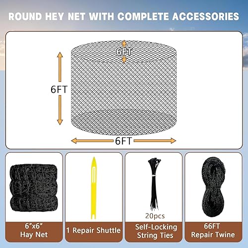 Comment on "6×6ft Large Round Bale Hay Nets for Horses, 6x6 ft Hay Net for Horses Slow Feed Knotless, Slow Feeder Hay nets for Horses, Fits Round Bales 4x4ft, 5x5ft, 6×6ft, Square Bales 3x3x8ft and 4x4x8ft"