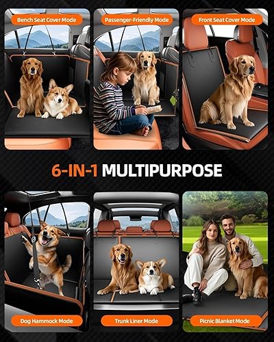 【6-in-1 Versatile Design】Easily convertible into six modes to suit your needs: dog hammock, passenger-friendly carseat cover, front seat dog carrier, rear bench cover, cargo liner for the trunk, or picnic mat. This multi-functional design is suitable for asientos of all sizes and offers a great gift option for pet owners who travel with their furry friends