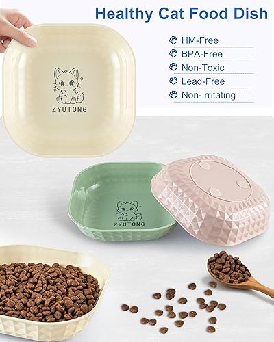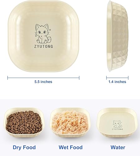 OPTIMAL DESIGN FOR CATS: With a 5.5 inch diameter, our whisker fatigue cat bowls are shallow and wide to prevent whisker contact; This small plastic kitten bowls can help keep your cats' whiskers from turning black or causing fatigue; Plus, The cat plate is fitted with a non-slip feet at the bottom to ensure that the cat does not push the cat feeding bowls across the slippery ground while eating