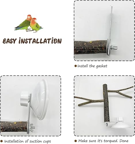 High-quality material: The suction cup accessories are made of ABS plastic and non-rusting metal materials, which can withstand the daily wear and tear of bird perches, and are safe and durable.