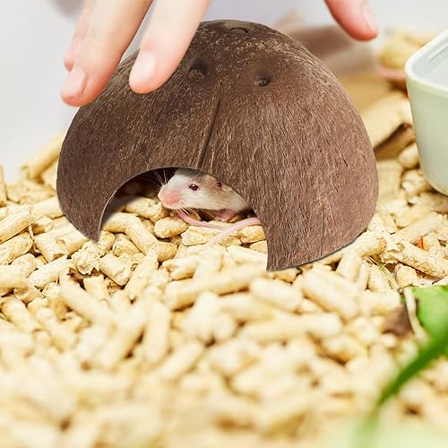 Reptile Coconut Hide Set: there are 6 pcs natural coconut huts designed for providing a cozy and warm hiding place for your lizard, gecko, snake, spider or hermit crab; To achieve better results, your reptile should have at least two hides in its enclosure so it can choose for itself
