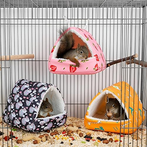 Spacious and Comfortable: the chinchilla bed adopts a uniform design of 19x19x15cm/7.5x7.5x6in, providing ample activity and rest space for small rodent pets such as hamsters and golden bears; Adopting soft and skin friendly short plush fabric, filled with warm PP cotton, the fabric is breathable and sweat proof, with a warm and comfortable touch, effectively locking in warmth
