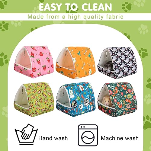 Value Package: the guinea pig hideouts nests features 6 cute cotton beds with different themes, including fox, giraffe, green forest, banana monkey, hot air balloon, and strawberry styles, to satisfy the freshness of pets, facilitate replacement and cleaning, and provide ample rest options; Multiple hamsters can be applied separately, and a single hamster can also be rotated to avoid the accumulation of odors caused by long-term use