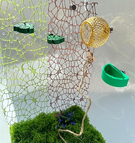 【Spider Web】: 1*Green and 1*Brown, Length 9.8in, Width 3.9in; The unique weave design of the simulated spider web gives jumping spiders more room to climb, and can be cut to any size, making it an excellent addition to jumping spider habitat decorations.