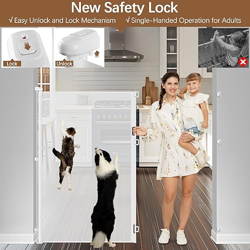 Single-Hand Operation: This 5-foot tall retractable dog gate features a single-hand operation lock mechanism, making it user-friendly for adults. It ensures children cannot easily open it.