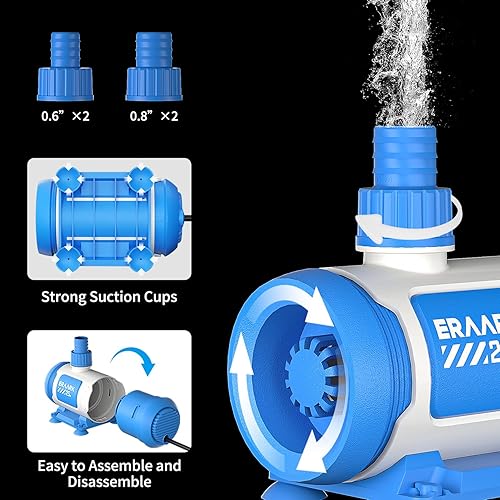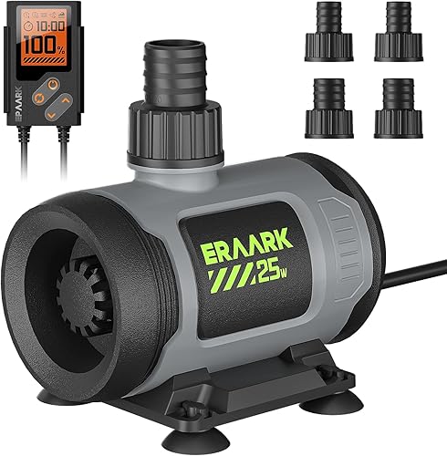 ERAARK water pumps with a control box can control the water flow and adjust the flow rate 80GPH to 650GPH to meet your various needs, adding convenience and fun to your life; This pump is the ideal choice for your aquarium ecosystem in both fresh and seawater environments