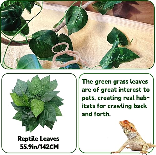 Bearded dragons like to climb or perch on high reptiles, it can use multiple jungle gym to create a multi-level jungle gym. Finding a favorite place in your pot for you or your pet. The hammock is connected by sucker. Jungle Climber Vines create an elevated vantage point that all reptiles will enjoy. Reptiles are interested in green leaves,creating real habitats for crawling back and forth.