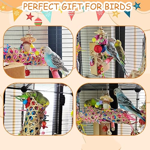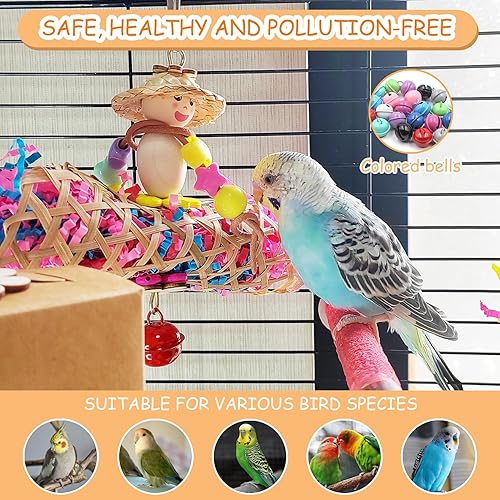 [Fun Multi-functional Toys]:Tearing paper toys are brightly colored, the sound of bells is crisp, and the unique fun foraging game box and hanging puppet design can quickly attract the attention of birds. Your baby will love it.