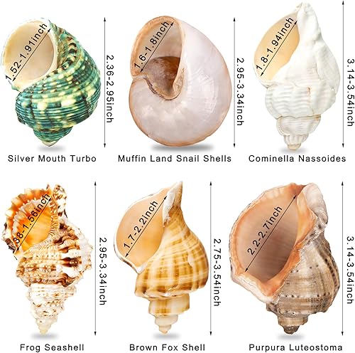 【6PCS Medium Large Shells】Our package includes 6 high-quality hermit crab shells medium large, ranging in sea conch size from 2.3 to 3.5 inches, opening Size:1 - 2.1 inches. Each shell is carefully selected to provide a variety of sizes within this range, ensuring a perfect fit for your medium and large hermit crabs.